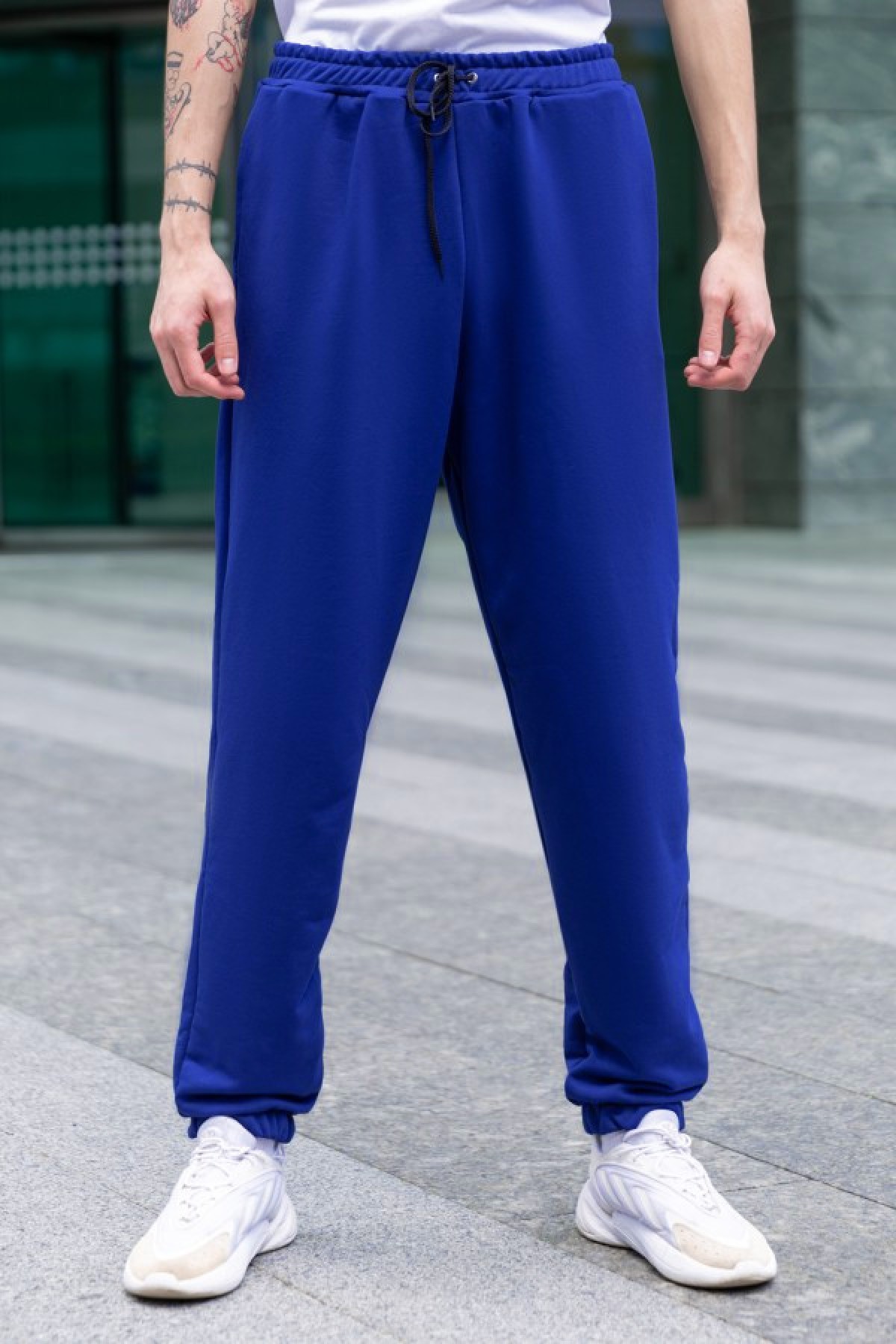 Мужские спортивные брюки демисезонные ярко синего (василькового) цвета - новая легкая модель мужских брюк со шнуровкой без начеса, подойдет тебе, если предпочитаешь летний спортивный образ и удобство в одежде.