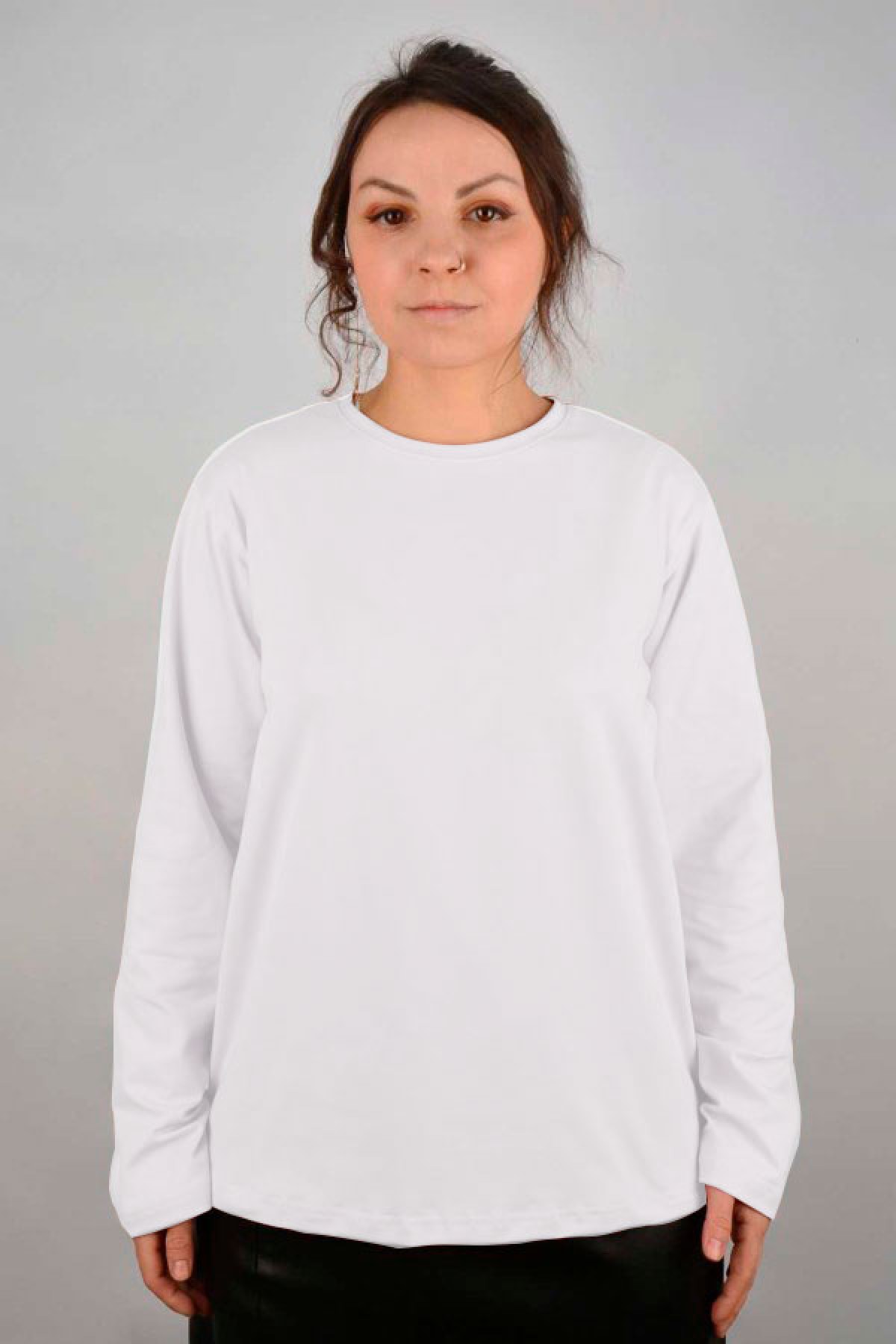 Базовый лонгслив трикотажный белого цвета с длинным рукавом для женщин. Однотонная модель без рисунка сшита из плотной кулирки супрем качество 190 гр/м. Состав 95% хлопок и 5% эластан, качество penie. У нас есть два размерных ряда: для мужчин и для женщин. Мы разработали фасон, который идеально сядет на любой тип фигуры: прямой силуэт, длинный рукав без манжета, аккуратный круглый вырез и классический втачной рукав. Особенности: рукав и низ обработаны с подгибом, ворот из двойной основной ткани. Кофта в минималистичном дизайне удачно впишется в повседневный образ! Подходит под все виды печати.