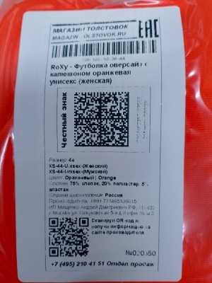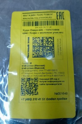 Как мы видим на скриншотах и фото - у товара одинаковый SKU(Код производителя), Одинаковый GTIN, а также информация на бирке указанна: р-р.44, XS-44-Unisex-(Женский),XS-44-Unisex-(Мужской). И в кабинетах ЧЗ и GS1RUS пол указан "Универсальный(Унисекс)", но при этом на стороне Интернет Магазина для этого товара существует два(2) ID товара (Код в учетной системе).