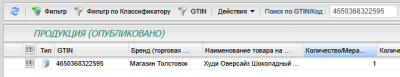 И в качестве примера сделал скриншот базы товаров в личном кабинете ГС1РУС