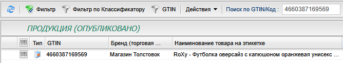 2. Выгрузим несколько товаров в GS1RUS.