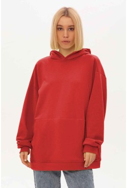 | Oversized unbrushed hoodie, looped, red, unisex (women's) |