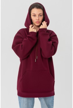 | Hoodie slims - oversized fleece hoodie with raglan sleeves, marsala color |