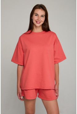 | Hooded T-shirt oversize "RoXy" Red-Brick unisex |