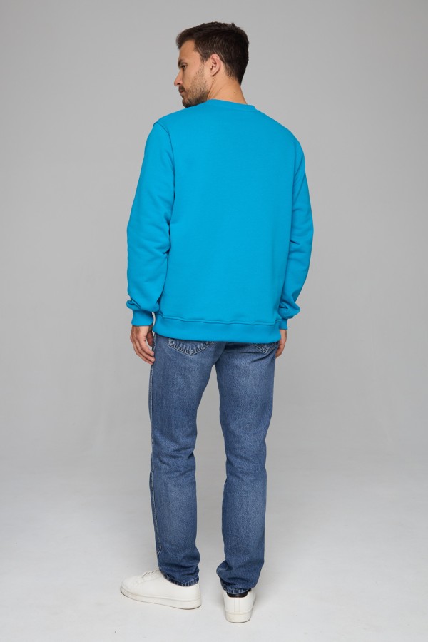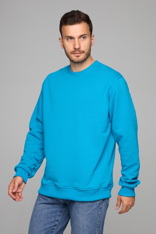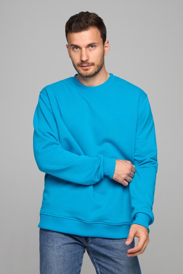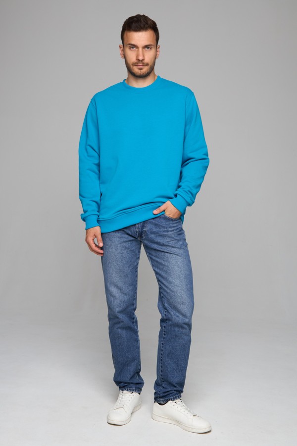 Мужской бирюзовый свитшот классический без начеса петельный 320гр/м2