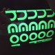 Надпись накапливает свет и светится в темноте ярким люминофором.