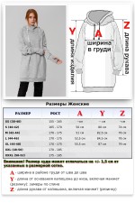 Размерная сетка для Удлиненная толстовка-платье серая женская с прорезью для большого пальца