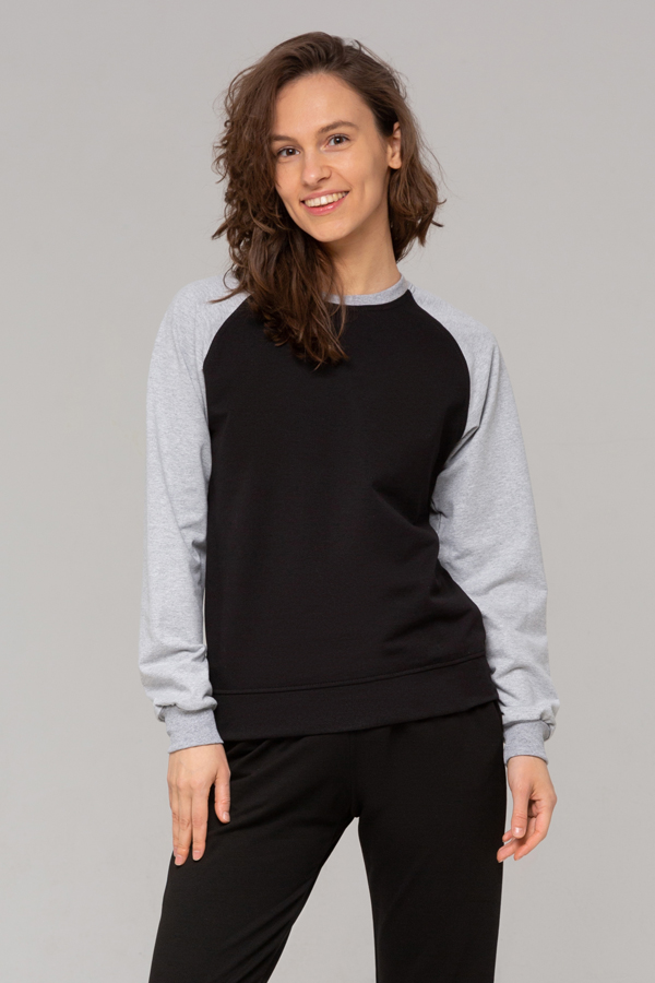 Стильный черный женский лонгслив с серым рукавом реглан является базовым верхом, который может быть дополнен спортивными брюками, джинсами, шортами, джоггерами или даже женственной юбкой по настроению. Такая одежда уместна в разных ситуациях от рабочей встречи до прогулки с друзьями, следовательно, кофта точно не будет пылиться в шкафу и порадует обладательницу своей теплотой. Сезон: лето, теплая весна и осень.